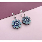 Agnes Daisy Floral Hoop Earrings : Blue Marble