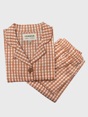 Yonder's sumptuously soft cotton pyjamas are perfect for lazy days and lie-ins. Sustainably and ethically produced, with consideration for our planet and all that live here. * 100% Organic Cotton * Hand black printed in Jaipur * Natural AZO-free dyes * Eco coconut shell buttons S Age 4-5 * M Age 6-7